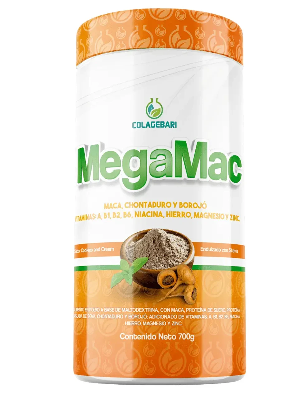 MegaMac es un suplemento natural para la salud y la vitalidad, formulado con una combinación de ingredientes potentes como la maca, el chontaduro y el borojó, junto con vitaminas y proteínas.