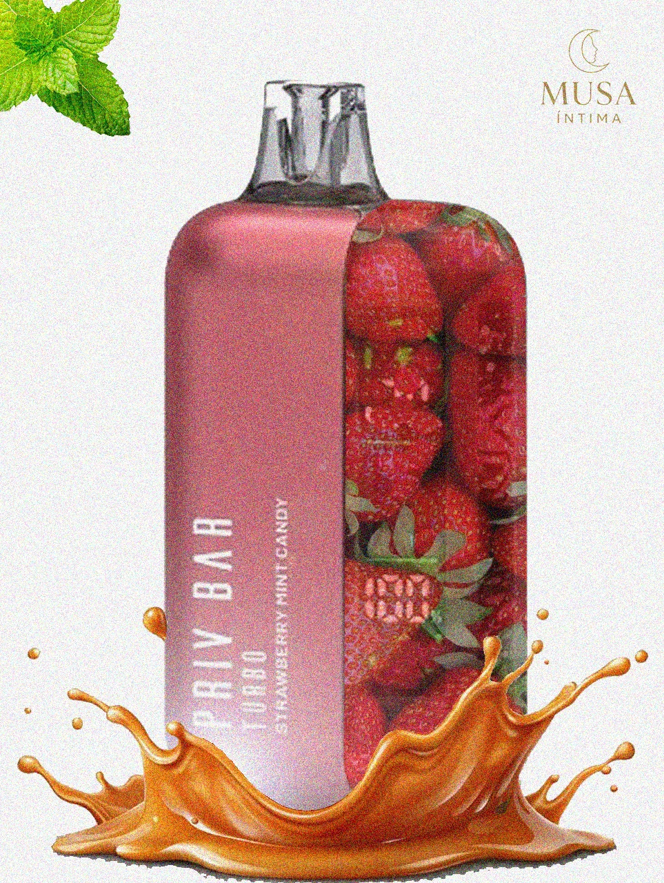 Su sabor combina la jugosidad de la fresa madura, el frescor vibrante de la menta y un toque dulce de caramelo, creando una experiencia de vapeo envolvente y deliciosa.
